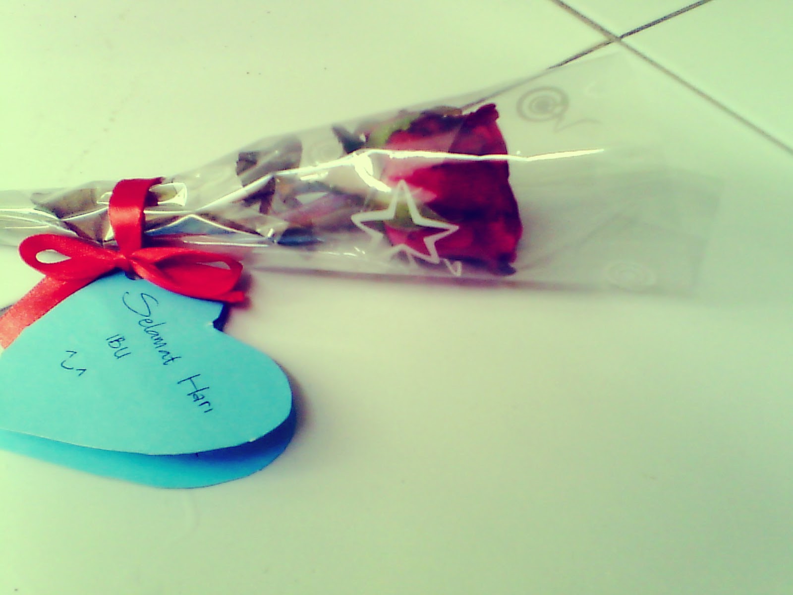tidak lupa kulilitkan pita merah di bagian tengah tangkai