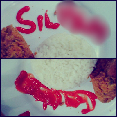 Ya... malam ini aku pergi bersama temanku. Di salah satu tempat kuliner di kotaku, aku memesan satu porsi makanan untuk makan malamku. Satu piring berisi sayap ayam dan nasi, lalu minumnya es teh manis. :)) Entah apa yang ada dipikiranku hari ini. Dari tadi pagi aku menulis kata itu. Sebuah singkatan namaku dan dia. Hanya sahabat-sahabatku yang tahu dan khususnya orang tersebut (yang bersangkutan) yang tahu. Aku menulis itu pada piringku dengan saos sambal yang ada di meja. Tak mau orang lain tahu, dan aku tak mau semakin memikirkannya lagi, aku pun cepat-cepat merusak tulisan itu. Hm... ini cerita ku malam ini. Terima kasih telah membaca ya blogger :))